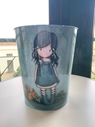 Papelera metálica de Gorjuss, en perfecto estado, sólo tiene una pequeña endidura en la base que apenas se aprecia.