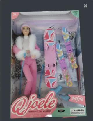 Set de muñeca Q.Joele con temática de esquí, ideal para crear historias. - Incluye muñeca con atuendo rosa y blanco. - Accesorios: tabla de snowboard, esquís y botas. - Edad recomendada: 3+ años.