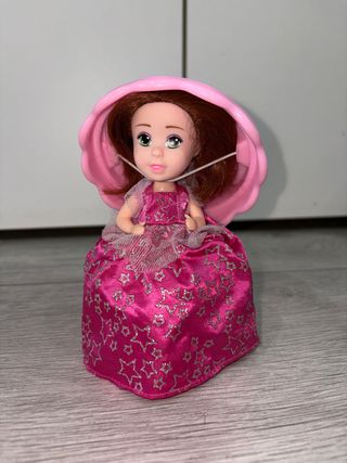 Adorable muñeca con vestido rosa brillante y detalles de estrellas plateadas. Incluye un sombrero rosa. - Vestido rosa con estampado de estrellas plateadas. - Sombrero rosa. - Muñeca con pelo castaño y ojos verdes.