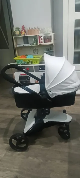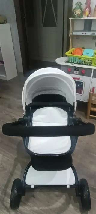 Sillita de muñeca con un diseño moderno y elegante, combinando el negro y el blanco. - Capazo amplio y cómodo. - Capota ajustable. - Ruedas todoterreno. Nunca a salido de casa, muy poco uso