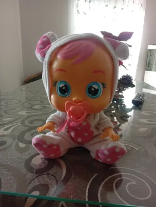Muñeca Cry Babies Kristal con un bonito vestido y accesorios. En perfecto estado,poco uso y funciona bien. - Muñeca con pelo azul y detalles de copos de nieve. - Incluye chupete morado con diseño de copos de nieve. - Vestido morado con tul y estampado de copos de nieve. - Abrigo blanco de pelo sintético. - Botas azules.