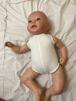 Muñeca Reborn de la marca Guca en buen estado. - Cuerpo de vinilo. - Ojos azules. - Incluye un jersey rosa y blanco.