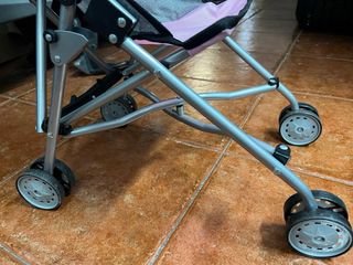 Silla de paseo para muñecas de la marca Lanina. Ideal para jugar. - Color rosa. - Diseño con volantes blancos. Muy buen estado, pero con pequeños desperfectos que se muestran en las fotos.
