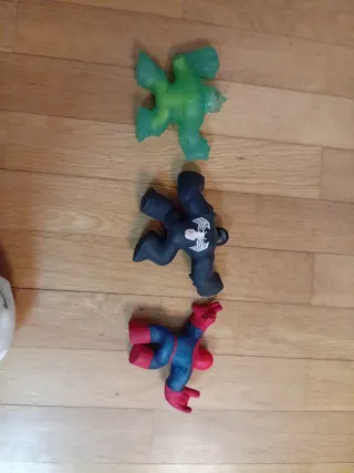 Set de tres muñecos estirables. - Muñeco verde. - Muñeco Venom. - Muñeco Spiderman.