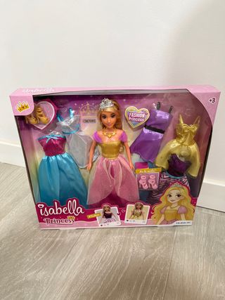 Set de muñeca Princesa Isabella con varios vestidos y accesorios para crear diferentes looks. - Incluye muñeca. - Varios vestidos. - Zapatos y otros accesorios.