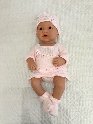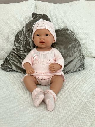 Sofía es un reborn de 46 cm pintado a mano. Viste pelele rosa, gorro y calcetines de lana. Incluye manta, chupete y certificado de nacimiento. CARACTERÍSTICAS: Tamaño: 46 cm Peso aproximado: 2,200kg aprox. Cuerpo de tela con peso Extremidades de vinilo suave Pintada a mano Efecto cabeza caída Detalles reborn: venitas, uñas, rojeces Varios conjuntos de ropa Accesorios: Manta Chupete Mochila de porteo Certificado de nacimiento