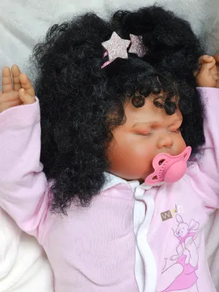 Muñeca Reborn realista, con gran detalle. - Mide 54cm y pesa 2.7kg. - Incluye chupete y biberón. - Ropa de bebé. - Muñeca Reborn de 44cm, pesa 1.7kg.