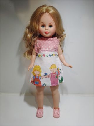 Muñeca Kika Pepa con vestido estampado.el tercer molde de nancy - Vestido con estampado de flores y dibujos infantiles. - Zapatos rosas. - Pelo rubio largo.3914