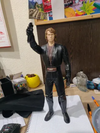 Figura de acción del personaje Anakin Skywalker de Star Wars. En el brazo derecho tiene un botón que al pulsarlo dice frases dependiendo de quién sea ( Anakin o Darth Vader) Al ponerle la mascara hace el sonido de la película Es un juguete 2en1, bastante divertido - Detalle del traje negro. - Diseño inspirado en la saga. - Muñeco articulado. - Juguete 2 en 1.