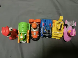 8 coches y sus correspondientes muñecos. Si se compran todos 60€, y si no 10€ cada coche con su muñeco. Si se adquieren todos los coches y la torre de control,todo en conjunto 75€