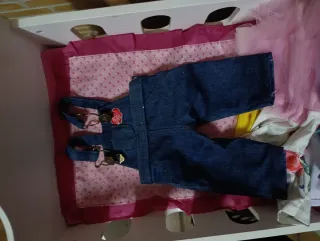 Peto vaquero y camiseta para muñeca