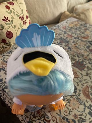 Muñeco bebé llorón con un adorable vestido de pato. - El muñeco no incluye su pipo.