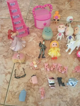 Conjunto de varios juguetes, incluyendo muñecos y figuras. - Figuras de personajes variados. - Diseños coloridos y divertidos. - Ideal para coleccionar o regalar.