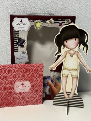 Muñeca Gorjuss de la marca Santoro con un conjunto de ropa magnética. - Incluye 38 láminas magnéticas. - Diseños de la colección Gorjuss. *Solo vendo a personas de Las Palmas de Gran Canaria*