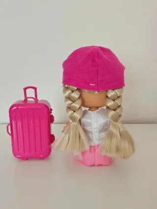 Muñeca con su maleta de viaje a juego. - Maleta de color rosa brillante. - Muñeca con vestido y gorra a juego. - Habla,tiene muchas frases. - Jugada una sola vez con ella. - Comprada en el Corte Inglés. - Incluye pilas nuevas.