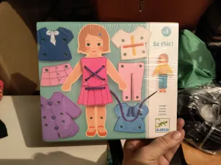 Set de costura y lacing de Djeco, modelo So Chic!. Ideal para desarrollar la motricidad fina. - Incluye muñeca y varias prendas de ropa para vestir. - Diseños coloridos y atractivos. - Materiales de fieltro y plástico.