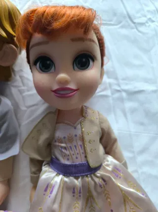 Set de muñecos de Ana y Kristoff, inspirados en la película. - Incluye un pequeño cofre con un anillo. - Muñeco de Kristoff con traje marrón y botas. - Muñeca de Ana con vestido y chaqueta.