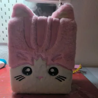 Maleta de juguete rosa con diseño de gatito, ideal para llevar a todas partes. Incluye una muñeca y accesorios. - Maleta con asa y cierre. - Muñeca con traje de baño rosa. - Accesorios de cama y ropa.