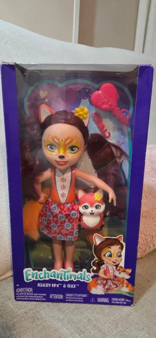 Set de muñeca Enchantimals Felicity Fox y su mascota Flick. Incluye accesorios. - Muñeca Felicity Fox con vestido y cola. - Mascota Flick. - Accesorios de peinado como cepillo y espejo. - Caja original.