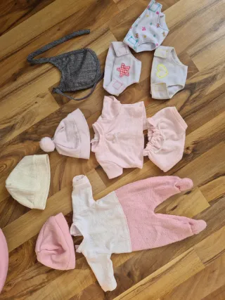 Lote de ropa y accesorios para muñecos bebé. - Variedad de prendas de vestir. - Incluye gorritos y calcetines. - Algunos accesorios de juego.
