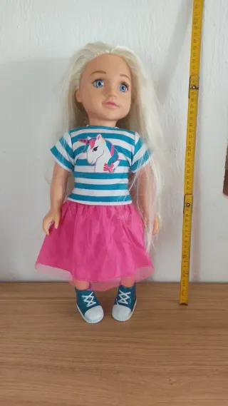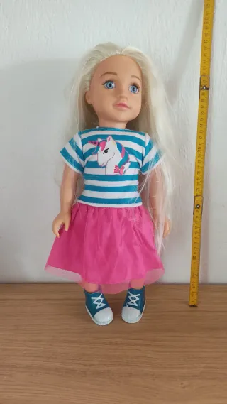 Muñeca grande con pelo largo y ropa