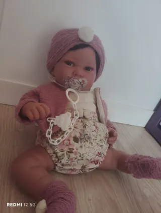 Muñeca reborn de alta calidad, con un aspecto muy realista. Incluye varios accesorios para completar el juego. - Muñeca con detalles cuidados. - Incluye chupete con cadena. - Viene con un conjunto de ropa. - Incluye gorrito.