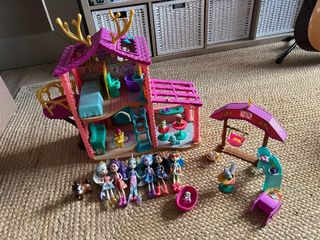 Set de juego de la Casa del Bosque de Enchantimals, incluye la casa, muñecas y accesorios de granja. - Casa de árbol con varios niveles y balcón. - Incluye varias muñecas Enchantimals. - Accesorios de granja y mobiliario.