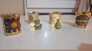 Lote de figuras Superthings con acabado dorado. - Figuras coleccionables. - Diseño metálico dorado.