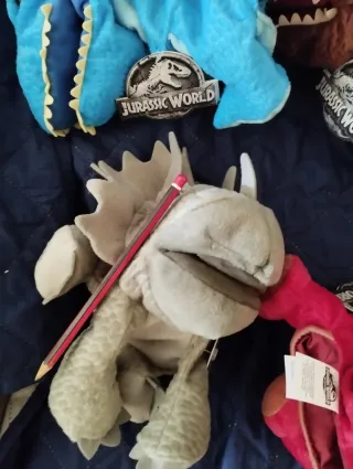Lote de 4 muñecos de dinosaurios de Jurassic Park. Incluye un T-Rex marrón, un T-Rex rosa, un Triceratops gris y un dinosaurio azul. Unidad 2, 5 euros todos a 7 euros. En principio en mano en Palencia. Están nuevos sin usar. - Muñecos pequeños - Diseños inspirados en Jurassic Park.