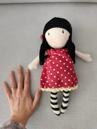 Muñeca de la marca Santoro, modelo Gorjuss. - Vestido rojo con lunares blancos. - Calcetines a rayas blancas y negras. - Adorno rojo en el pelo. Nueva, sin usar. Hago lotes y vendo en persona.