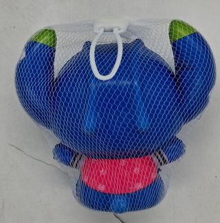 Muñeco infantil con diseño de personaje. - Color azul principal. - Detalles en morado, verde y rosa. - Incluye malla protectora.