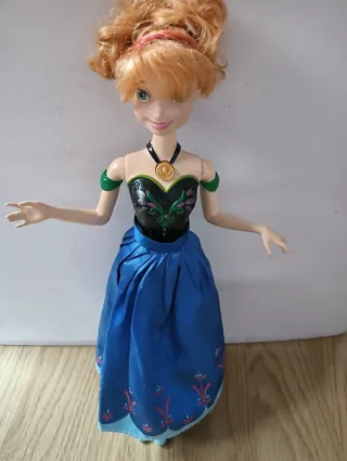 Muñeca de la Princesa Ana con su ropa y peinado original. - Incluye un mechón rosa en el peinado. - Vestido con detalles. - Collar con medallón.