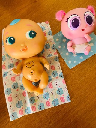 Se venden dos muñecas Bellies, cada una con su biberón y ropa(el vestido es reversible) - Ambas muñecas llevan un chupete. - Incluyen dos biberones. PRECIO ORIGINAL (aprox) Por muñeca: 25-30