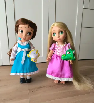 NO ENVÍO POR CORREOS, CANCELO LA COMPRA. SÓLO INPOST, GLS, UPS, SEUR... Lote de 2 preciosas muñecas originales de Disney Animators, Bella de La Bella y La Bestia y Rapunzel. Desperfectos en las imágenes. Bella tiene en la ceja una pequeña manchita pero tienes que fijarte mucho para verla. El pelo de Rapunzel está completamente desenredado pero ligeramente esponjado como se ve en las imágenes. El peinado de Bella es fiel a la película y se puede quitar el lazo sin desarmar el peinado. También le he añadido encaje a su vestido en el cuello y la falda. Los calcetines son hechos a mano. 🌟 Envío rápido 🌟 Artículos protegidos