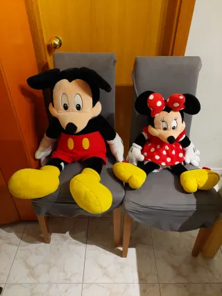 Set de peluches de Mickey y Minnie Mouse. - Peluche de Mickey Mouse con su icónico traje rojo y amarillo. - Peluche de Minnie Mouse con su vestido de lunares y lazo. - Muñecos de felpa suaves y abrazables. -Comprados originales en Eurodisney. -Por separado 30 cada uno. Los dos juntos 50.