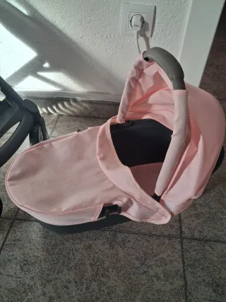 Cochecito gemelar para muñecas en perfecto estado. - Comprado hace justo un año. - Prácticamente no se ha usado. - Diseño de dos asientos. - Color rosa y gris.
