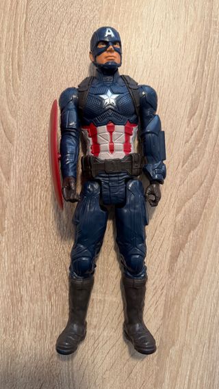 Figura de acción del Capitán América, el icónico superhéroe. - Diseño detallado del traje. - Colores azul, rojo y blanco característicos. - Símbolo de estrella blanca en el pecho.