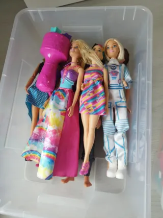 Lote muñecas Barbie, perfectas para coleccionar o jugar. Incluye una variedad de estilos y atuendos. - Muñecas Barbie. - Variedad de vestidos y accesorios. - Ideal para fans de Barbie. - Regalo armario vestidor Barbie
