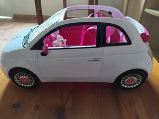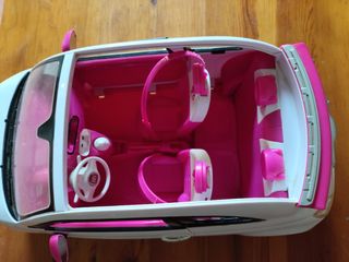 Coche descapotable para muñecas, ideal para jugar. - Color blanco con detalles en rosa. - Interior rosa. - Ruedas plateadas con centro rosa.