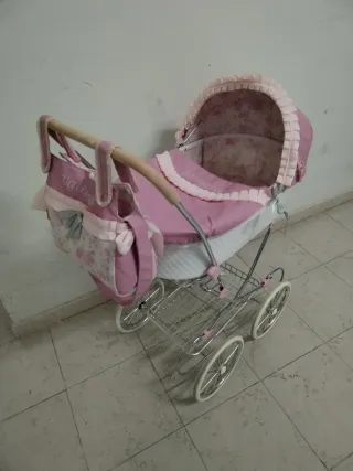 Precioso carro de muñecas Reborn de la marca De Cuevas. Diseño clásico y elegante. Incluye: - Bolso a juego - Sombrilla - Cesta en la parte inferior - Almohada, colchón y mantita. Manillar regulable en altura (hasta 98cm). Ruedas grandes con detalles cromados Como nuevo. En perfecto estado.