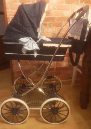 Mi hija quiere vender el carro de su comunión, ya tiene 20 años (ella), el carro es de 2015 de buena calidad. Carro en metal cromado (en excelente estado), plásticos y telas también, la puntilla ya no es blanca pero no está mal, ideal si tienes una muñeca que se llame Carlota, ya que está bordado. Lo único que tiene es los picados de la goma espuma, como se observa en la foto (culpa del nuevo gato, casi me lo como). La altura del suelo al manillar es de 92 cm, por lo cual es ideal para una niña altita.