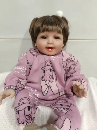 Muñeca bebé realista, ideal para coleccionistas o como regalo especial. - Cuerpo de tela, extremidades de vinilo - Pesa 2 kg aprox - Mide 48 cm aprox - Incluye chupete, gasa, pañal, body, pijama y alguna cosita más.. Envío rápido