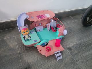 Divertida caravana de juguete con diseño de Koali (+ gato).Incluye una muñeca y varios accesorios para horas de juego. - Caravana desplegable con interior detallado. - Muñeca con temática de animal. - Accesorios de juego como tobogán y mobiliario.