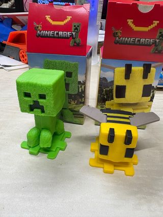 Set de figuras de Minecraft del McDonald - Figura de Creeper verde. - Figura de Abeja amarilla y negra. - Base verde para cada figura. Precio por el Pack