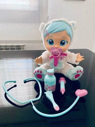 Pack 3 muñecas: Cry Babies con accesorios médicos. - Muñeca con traje de oso. - Accesorios incluidos: estetoscopio, jeringuilla, biberón y termómetro. - Estilo de juego de rol médico. 2 muñecas más que no me acuerdo del nombre. Las muñecas estan nuevas. Se venden sin caja, tal qual aparecen en las fotos. Nuevas valen alrededor de 100 euros en total. Las ponemos a 50 euros