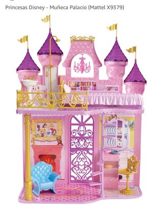 Este es el Palacio de las Princesas Disney de Mattel. - Incluye varios niveles y torres. - Decorado en tonos rosas y morados. - Balcones y detalles dorados. - Chimenea y mobiliario interior. Se vende sin muñecas