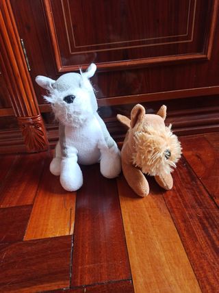 Preciosos peluches en buen estado. Son cuatro en total: un Simba, un oso, un gato y una muñeca. La muñeca tiene un vestido rosa y zapatos rosas. Los peluches son suaves y están listos para un nuevo hogar. - Simba, el león, tiene una melena marrón. - El oso gris es muy tierno. - El pequeño gato es de color marrón claro. - La muñeca tiene el pelo rubio. Consultar precio para venta individual
