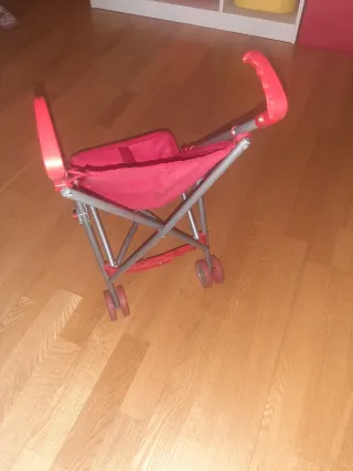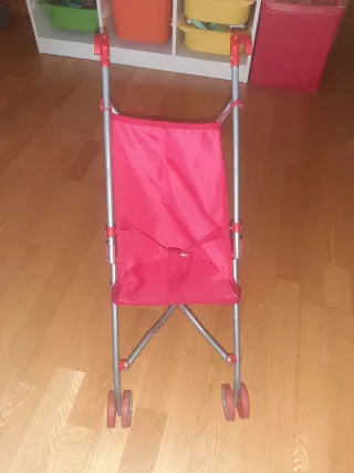 Silla de paseo plegable, ideal para llevar las muñecas de paseo. Su diseño ligero la hace fácil de transportar. Muy poco uso. - Estructura metálica. - Asiento y respaldo de tela roja.