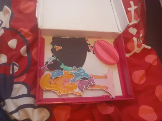 Divertido juego magnético para vestir muñecas. - Incluye figuras de muñecas y accesorios. - Piezas magnéticas para crear diferentes atuendos. - Caja para guardar todo.