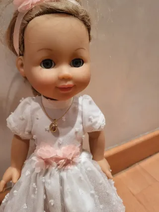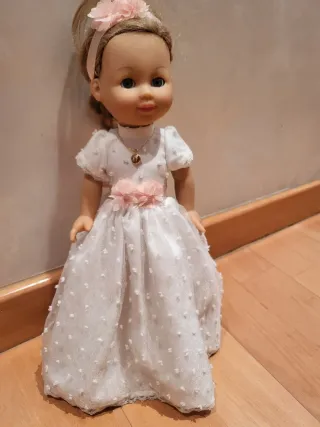 Preciosa muñeca vestida de comunión. - Vestido blanco con detalles de flores. - Diadema a juego con flores. Bien cuidada. En buen estado.